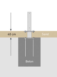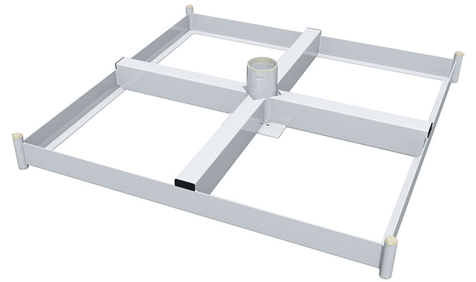 Distanciador a partir de 89 mm, por ejemplo para la subestructura del patio; necesario para sombrillas con equipo eléctrico. Las dimensiones no incluyen la altura de la chapa de acero. Ten en cuenta la cubierta de invierno más 8 mm para suelo nivelado.
