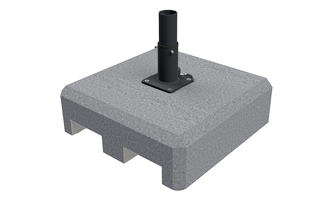 Dimensiones del soporte de hormigón: aprox. 800 x 800 x 250 mm, peso aprox. 310 kg (sombra, por tanto, 250 mm más alta)